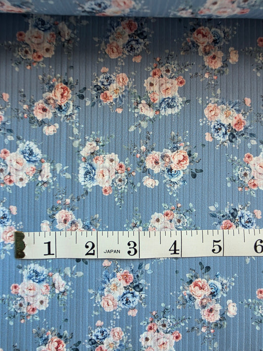 Dusty Blue Dreamy Elegance Floral Reign Rib Knit