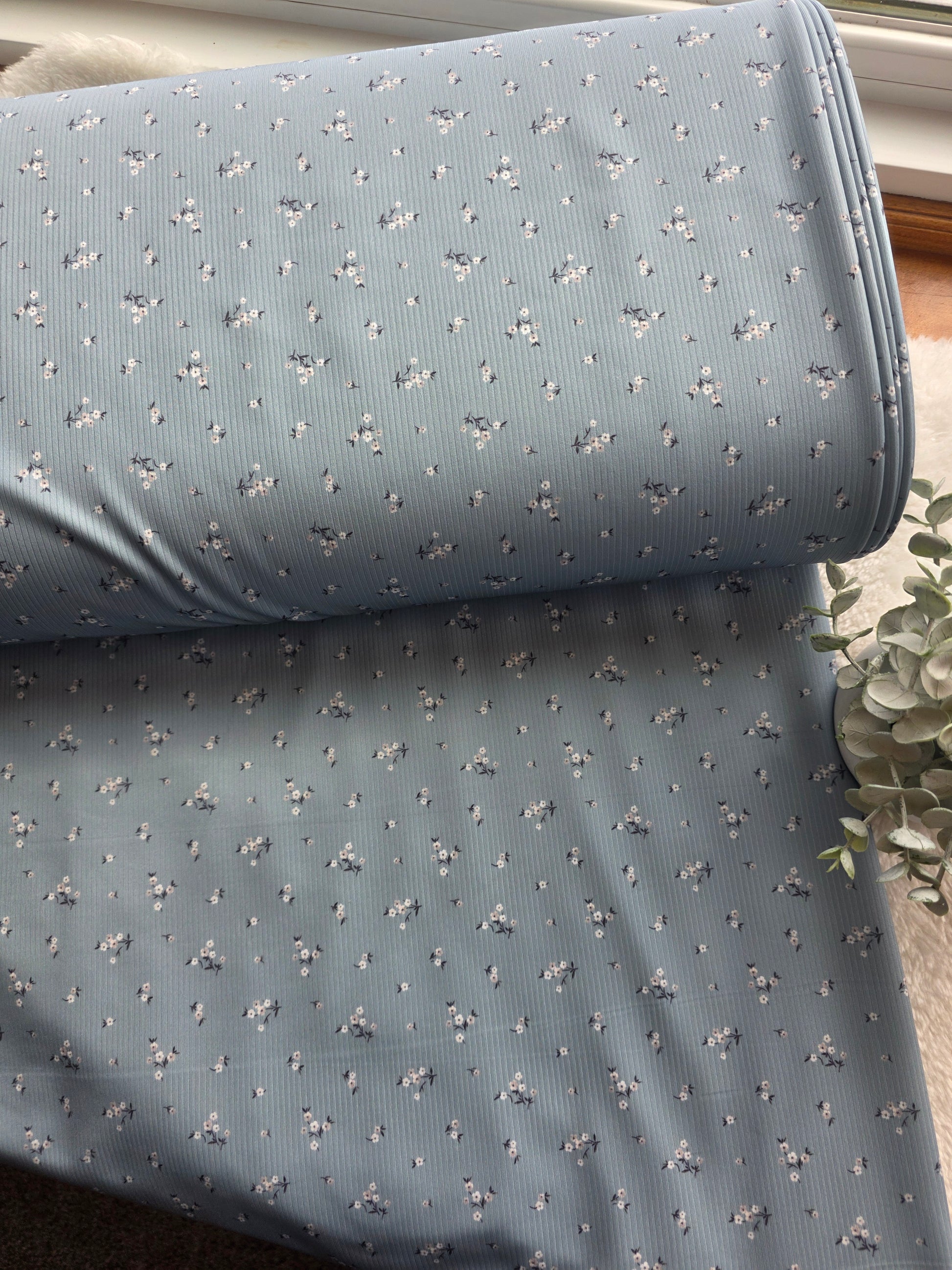 Teal Tiny Floral Mini Rib Knit